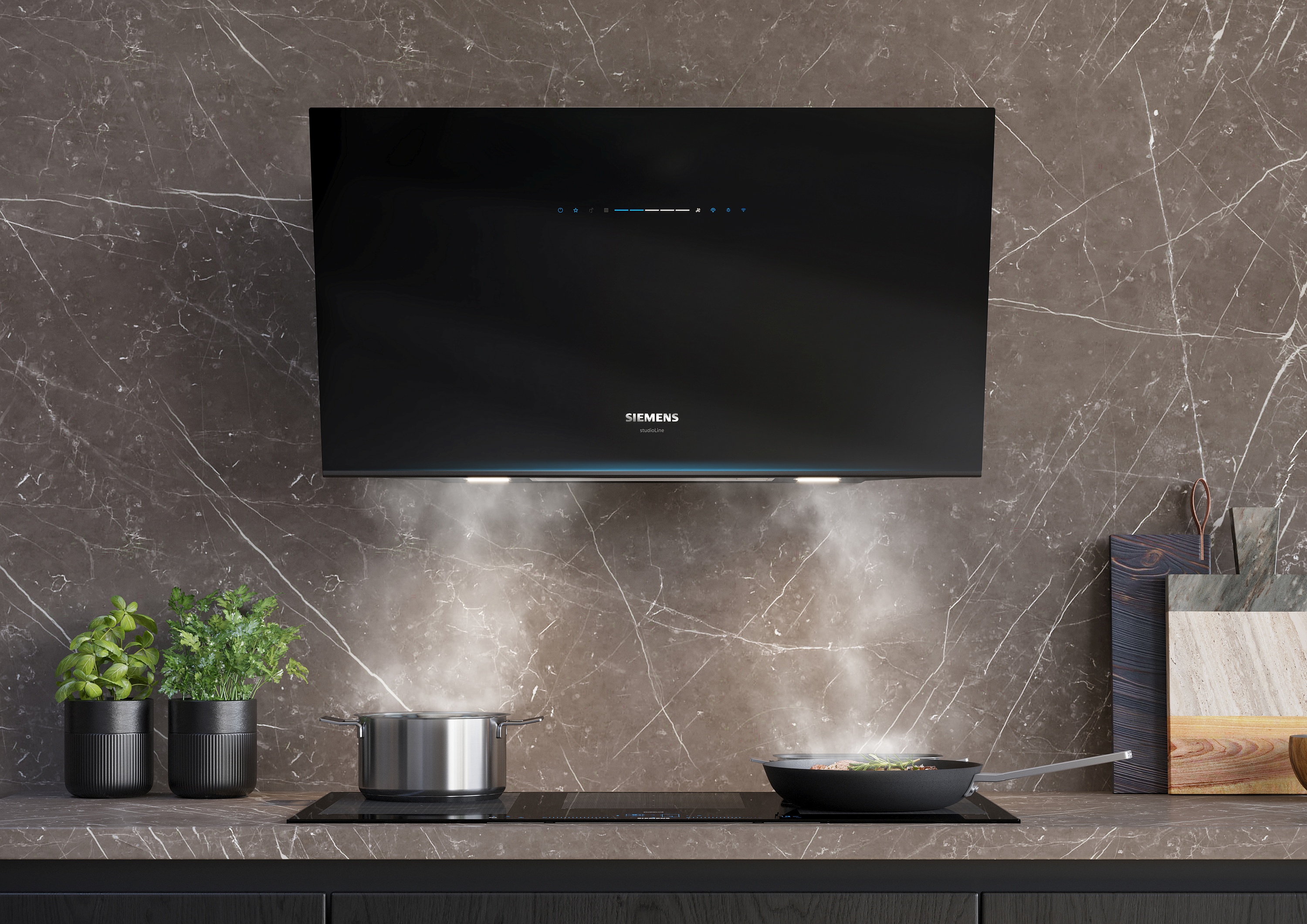 Die Lüftungssysteme der Siemens studioLine bieten das Höchstmaß an intelligenter Technologie, prägnantem Design und überlegener Leistung. Ob Kochfeld und Lüftung in einem Gerät kombiniert wie bei der inductionAir Plus, als ausfahrbarer Glas-Dunstabzug mit der glassDraftAir oder als klassische Wandlösung – die Dunstabzüge der Siemens studioLine ermöglichen Ihnen das maximale Maß an Freiheit und Innovation bei Ihrer Küchenplanung.